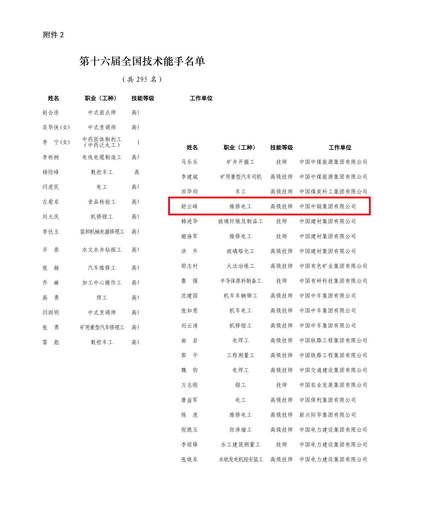 中鋼天源1人榮獲全-國技術能手榮譽稱號