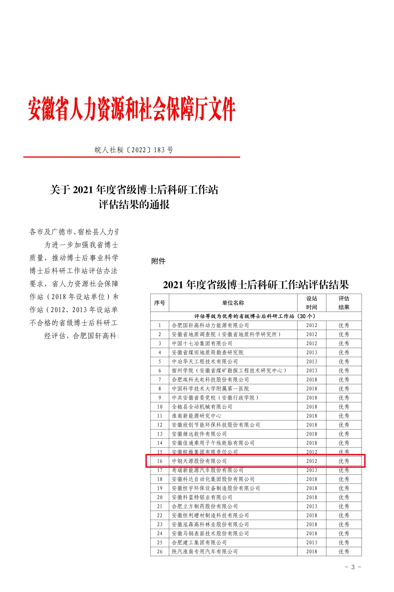 中鋼天源博士后科研工作站獲安徽省綜合評估 “優(yōu)-秀”評級