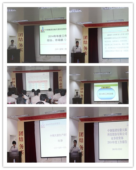 2015年1月9日,中鋼天源2014年年度工作會(huì)議暨二屆二次職代會(huì)在本部一樓會(huì)議室隆重召開。公司領(lǐng)導(dǎo)班子、中層以上干部、職代會(huì)代表及部分離退休干部共70余人參加了會(huì)議。會(huì)議由公司副總經(jīng)理、黨委副書記、紀(jì)委書記亞海斌主持。
