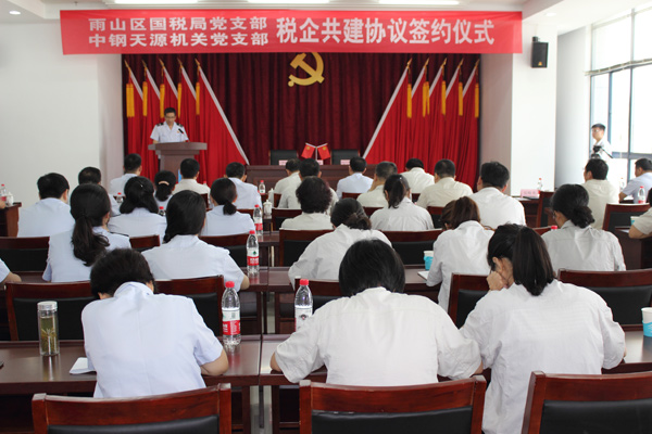 會上,中鋼天源副總經理芮沅林和市國稅局副局長吳農分別代表企稅雙方致詞。在雙方領導的見證下,中鋼天源副總經理、機關黨支部書記章超和雨山區國稅局黨支部書記、局長吳屹共同簽訂了《稅企結對共建協議書》,標志著雨山區國稅局黨支部和中鋼天源機關黨支部結對共建活動正式啟動。雙方將按照“組織建設互促、黨員干部互動、黨建載體互融、稅企攜手共贏”的目標共建新品牌、同創新發展、奮進新時代。隨后石局長還代表雨山區國稅局向中鋼天源財務部贈送了稅收政策資料,稅收業務骨干現場解答了中鋼天源提出的政策性問題。